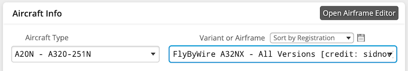 | SimBrief Airframe |
