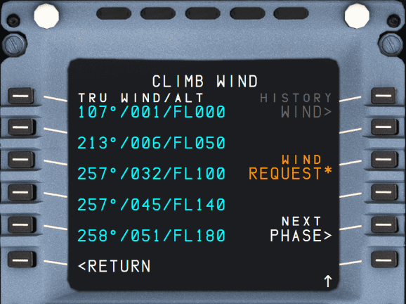 - In real life, selecting the wind requests option on the climb page would populate the wind data for all stages of flight.