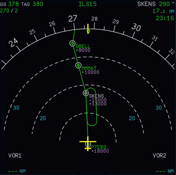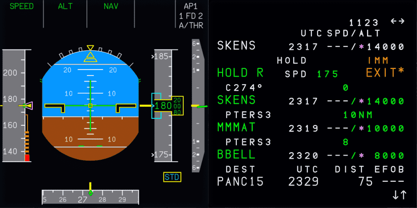 Now that all information about the hold is known, it is time to create a hold in the FMS via the MCDU. A step-by-step guide to hold at SKENS is provided below.