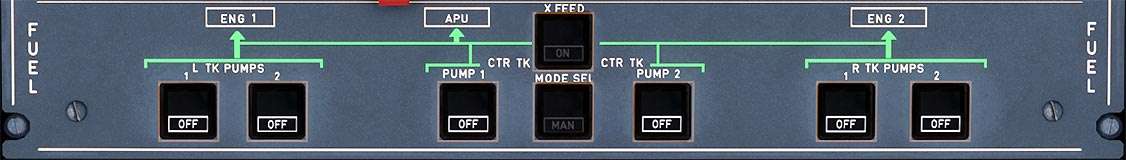 • Manual control of center tank valve to inner tanks with center tank pumps button switches.