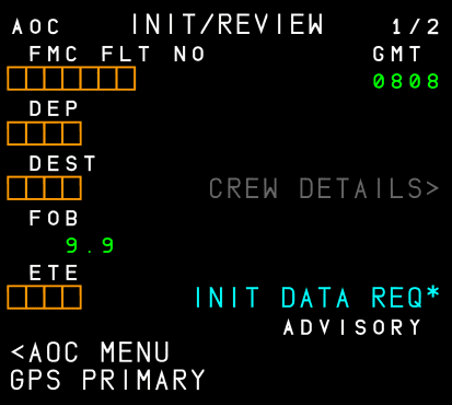 • F-PLN initialization (flight plan and performance data)