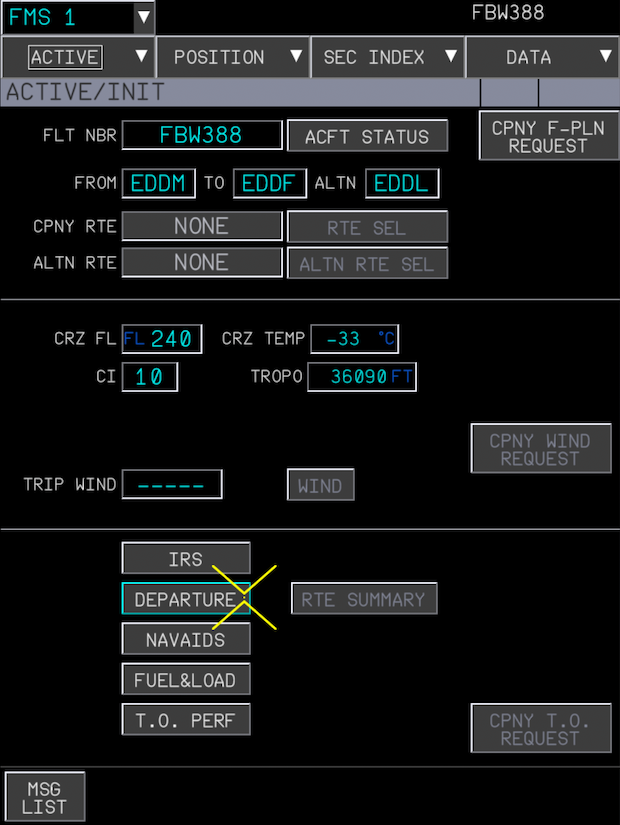 This starts with clicking the DEPARTURE button on the INIT page.